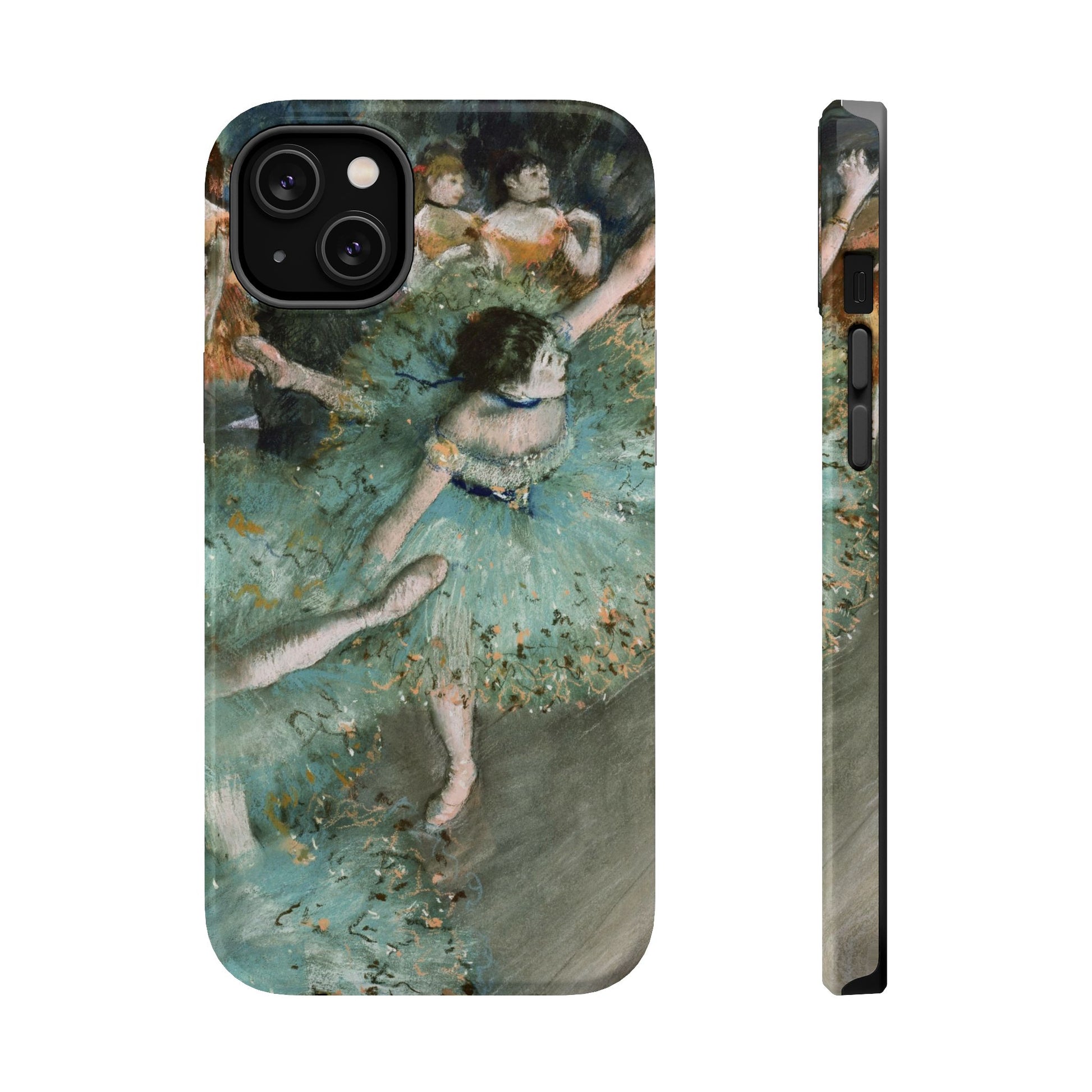 Enhance your phone with the timeless elegance of Edgar Degas’ "The Green Dancers" and cutting-edge functionality with this Magnetic Tough Case. Featuring a high-resolution, full-wrap print of Degas’ iconic painting, this case blends the grace of fine art with modern protection. The dual-layer design, crafted from a durable polycarbonate shell and flexible black TPU lining, ensures your phone is safeguarded from impacts and drops. Equipped with an embedded magnet module compatible with MagSafe® accessories, this case offers both style and convenience. With its premium glossy finish, this case brings the vibrant beauty of Degas’ masterpiece to life while providing superior protection.